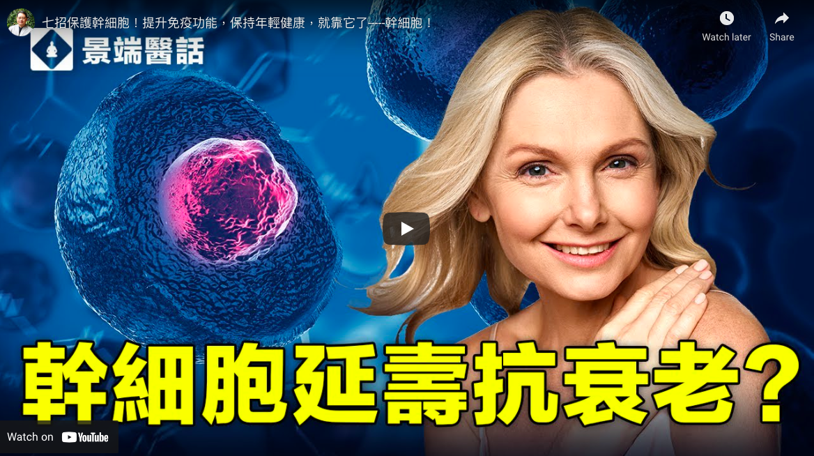 幹細胞能生產免疫細胞,並直接影響我們的免疫功能和衰老的進程。維持幹細胞的數量和質量,成為了抗衰老的重要步驟。本期視頻楊醫生帶您了解幹細胞,以及它數量和質量的影響因素,並教您7招來保護幹細胞、抗衰老!每期都有健康小知識,不看就虧了!